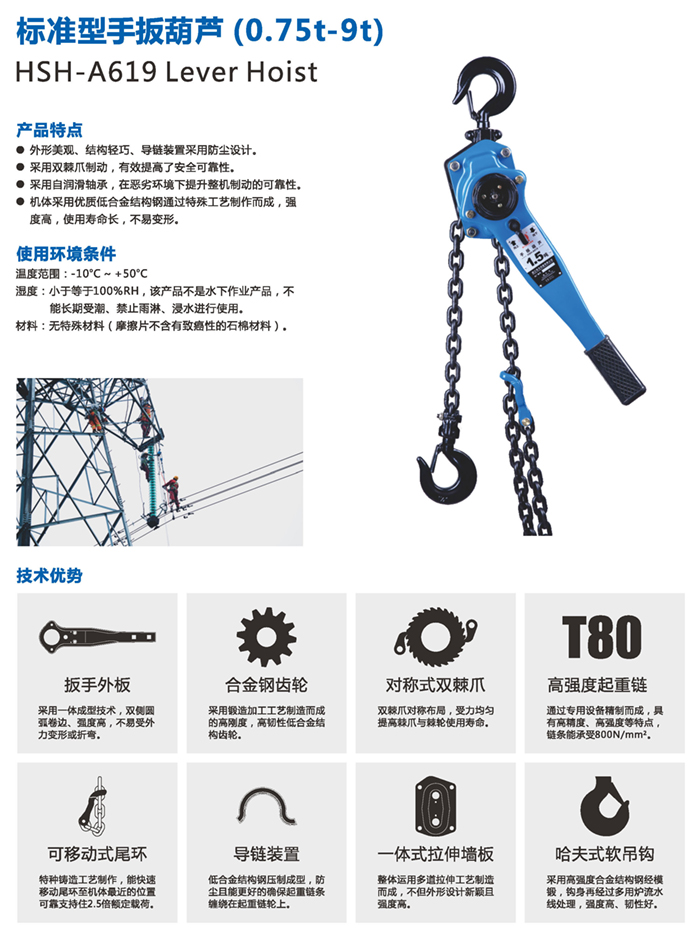 8.起重鏈條是特殊合金鋼制作并經過熱處理,不能私自進行焊接或改裝。